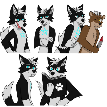 Close-ups of important accessories or details (collars, scars, weapons, etc.)